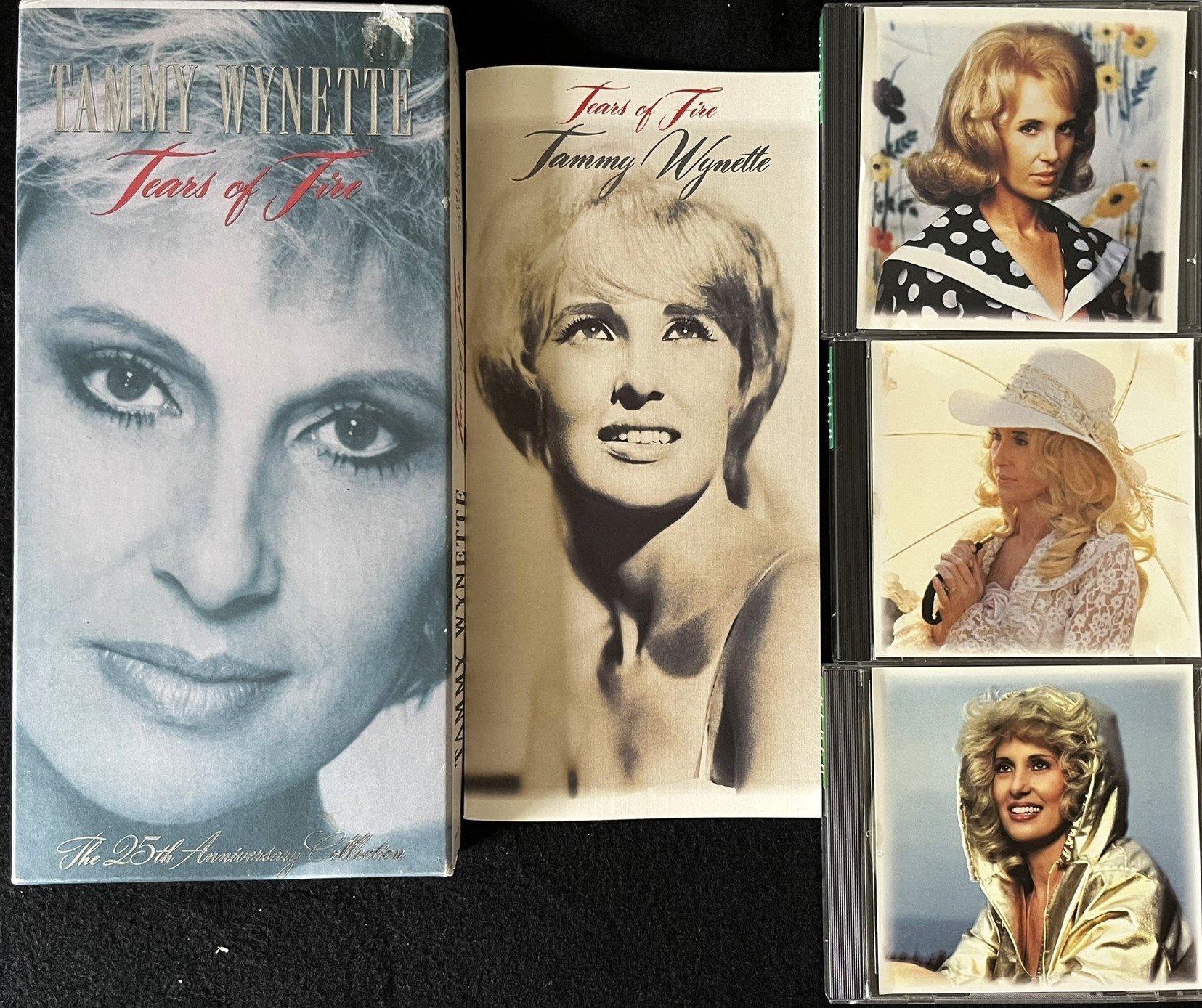 Sony/Epic ga nettopp ut en tre CD-boks med henne kalt «Tears Of Fire». Det inneholder 67 låter innspilt i perioden 1964—1991 og favner alle klassikerne (som «Stand By Your Man» og «D.I.V.O.R.C.E.» og en rekke av duettene med George Jones) så vel som til nå upubliserte saker og det svært overraskende og bisarre samarbeidet med rap-gjengen KLF, «Justified And Ancient». Boksen inneholder også et hefte som er kjekt å ha. Hele stasen koster snaue 400 kroner, og det er billigere enn et dårlig skipar (og hva skal du nå med det?). Få det over på kassett i bilstereoen, og du kjører 30 mil uten å stoppe. (Skyld på meg hvis kona hadde middagen klar.)