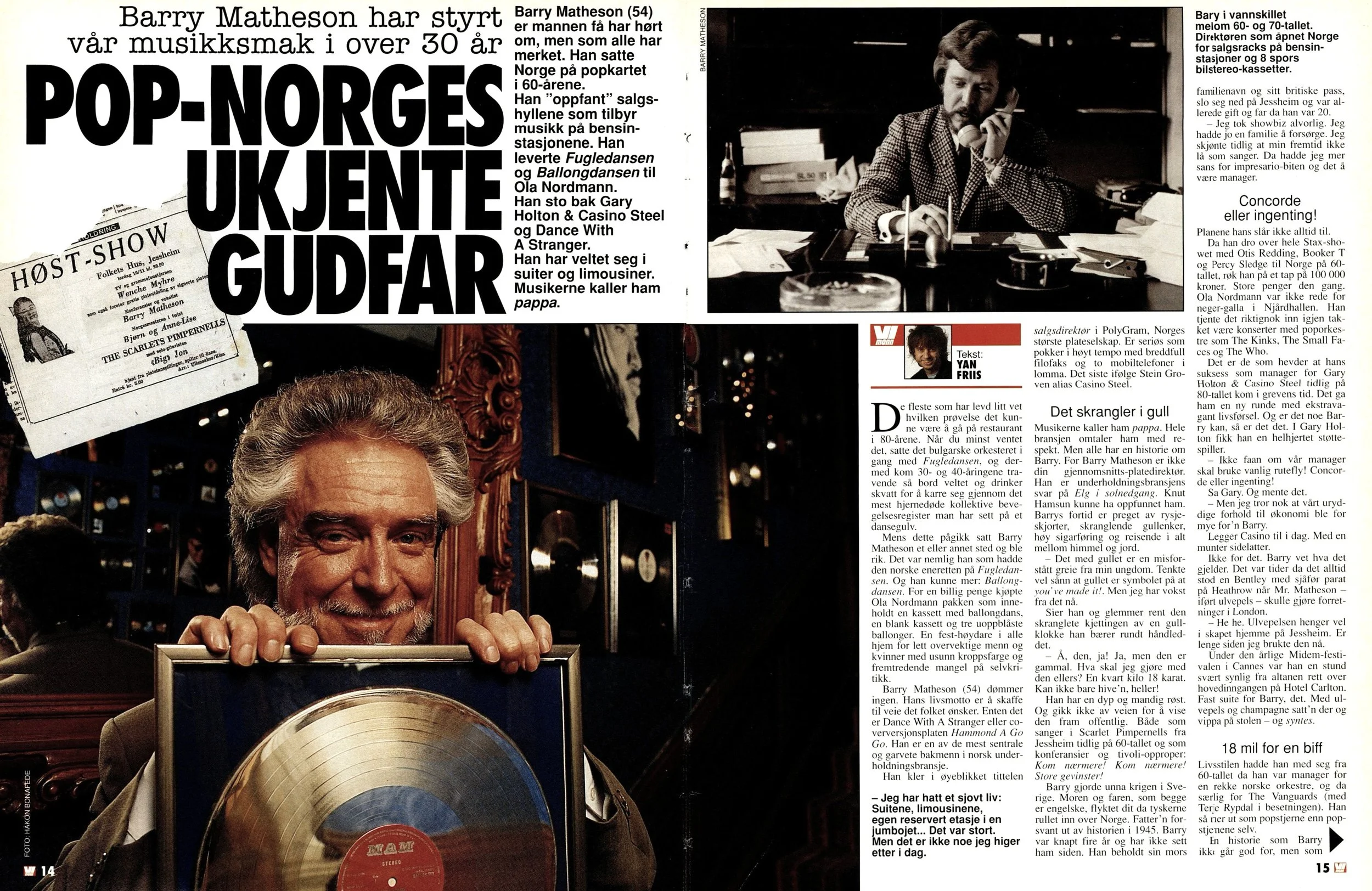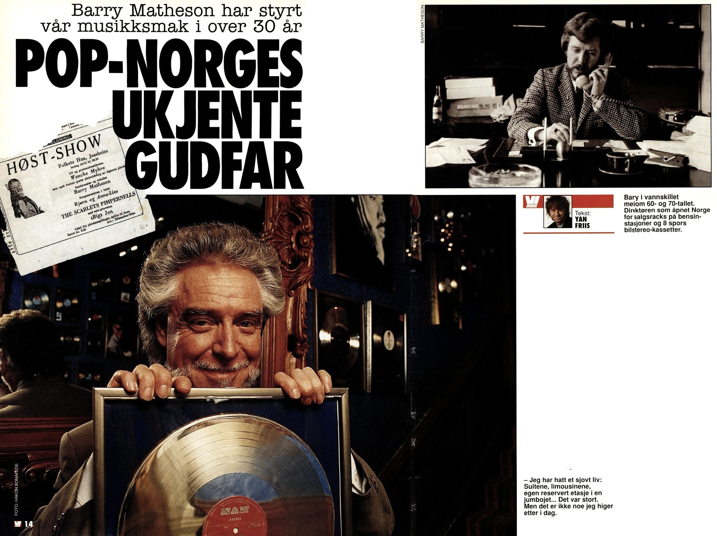 Barry Matheson (54) er mannen få har hørt om, men som alle har merket. Han satte Norge på popkartet i 60-årene. Han ”oppfant” salgshyllene som tilbyr musikk på bensinstasjonene. Han leverte Fugledansen og Ballongdansen til Ola Nordmann. Han sto bak Gary Holton & Casino Steel og Dance With A Stranger. Han har veltet seg i suiter og limousiner. Musikerne kaller ham pappa.