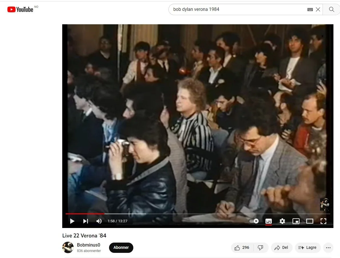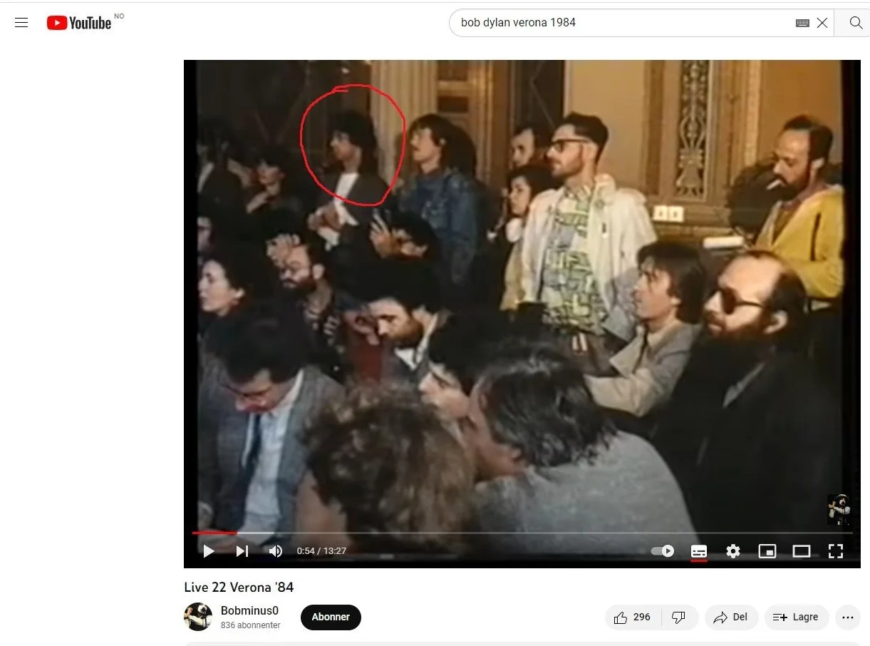 De husket meg imidlertid fortsatt da Dylan kom til Europa i 1984. Jeg ble innvilget eget intervju og overrekkelse av diplomet for “Shot Of Love” i Milano. Det vil si, informasjonen fra CBS var mildt sagt forvirrende, og da jeg sjekket inn på mitt hotell i Milano, kom kontraordren: Hiv deg i en bil og kom til Verona. Konsert i kveld.