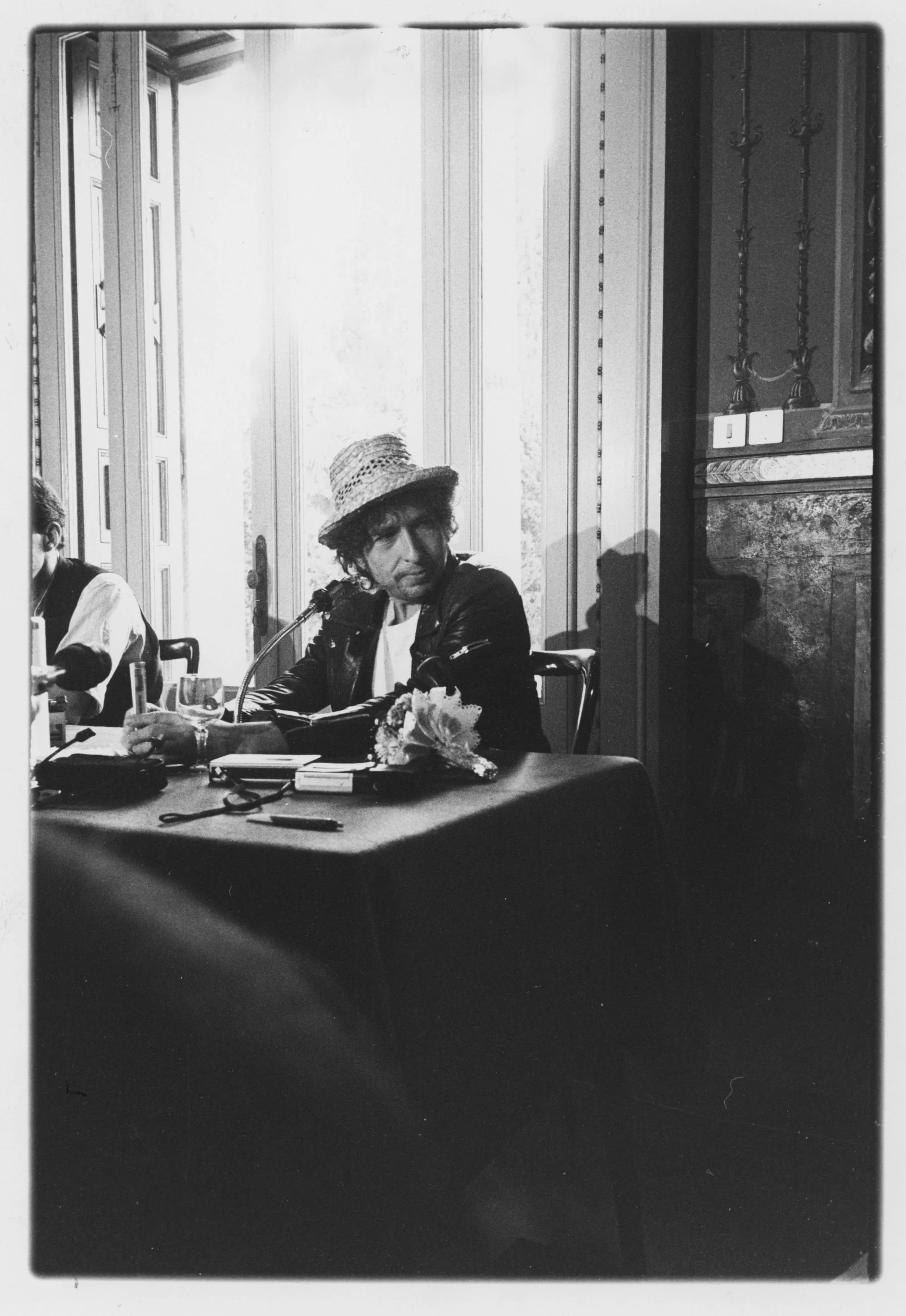 Noen ramler inn på Jimi Hendrix. Dylan berømmer den avdøde gitaristen, sier seg svært fornøyd med dennes versjon av «All Along The Watchtower», og klarer på en eller annen måte å få sagt at Carlos Santana tilhører en liten og sjelden elite av rockens beste gitarister. Kanskje et hint om at journalistene bør spørre Carlos om noe også, han blir sittende uvirksom der på hjørnet. Dog. Det var ikke særlig gjennomtenkt å plassere Santana her midt i noe så uvanlig som en Dylan pressekonferanse.