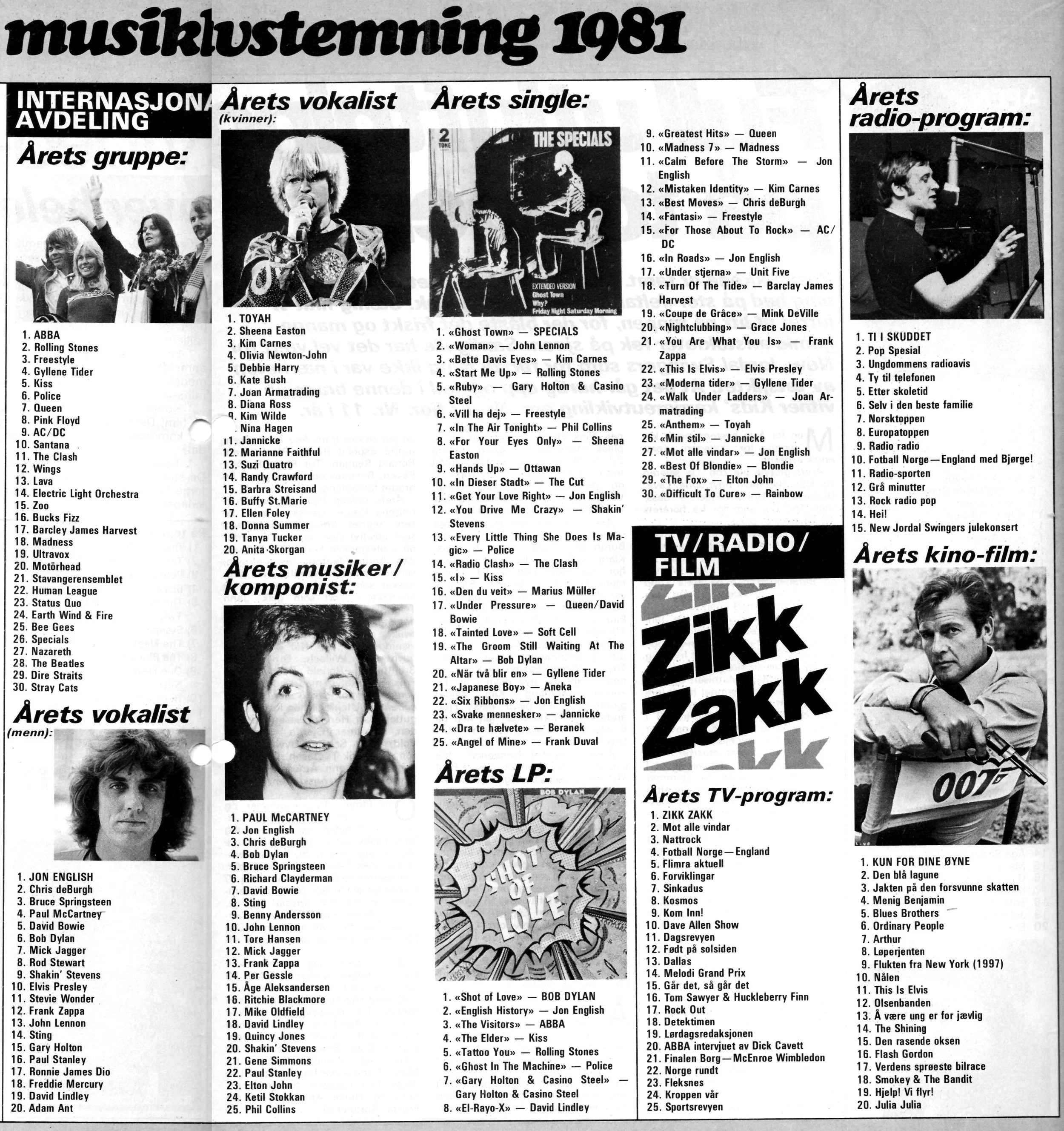 Og her årsaken til at jeg la ut på denne ferden, kåringen av årets LP ved Det Nyes lesere. Publisert tilbake i 23. februar 1982. Diplomet befinner seg i øyeblikket godt innpakket i en garasje på Røa.