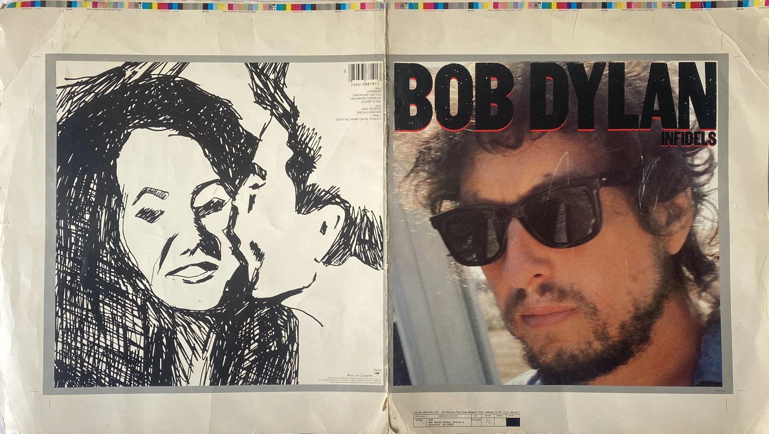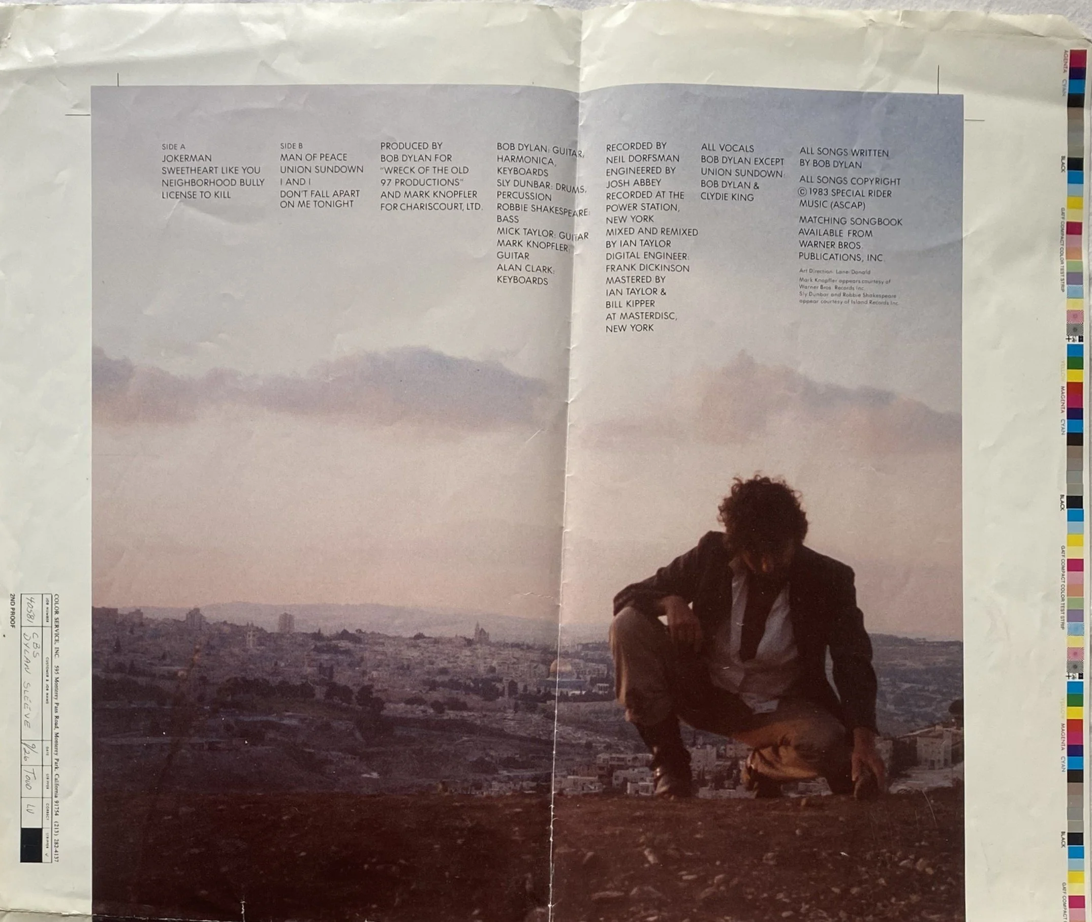 Bob Dylan i Jerusalem. Prøvetrykk innerpose “Infidels”.