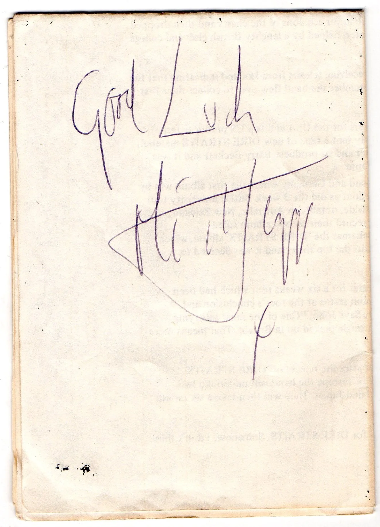 Av mangel på noe mer profesjonelt, måtte jeg ofre plateselskapets Dire Straits-biografi for å sikre meg Mick Jaggers signatur.