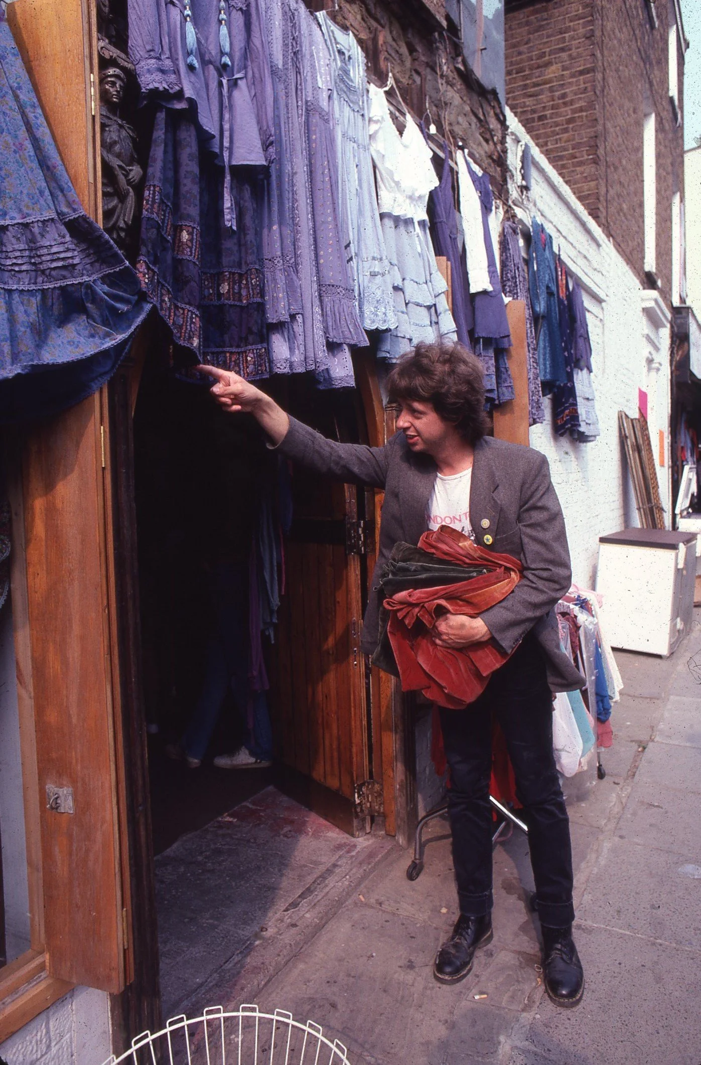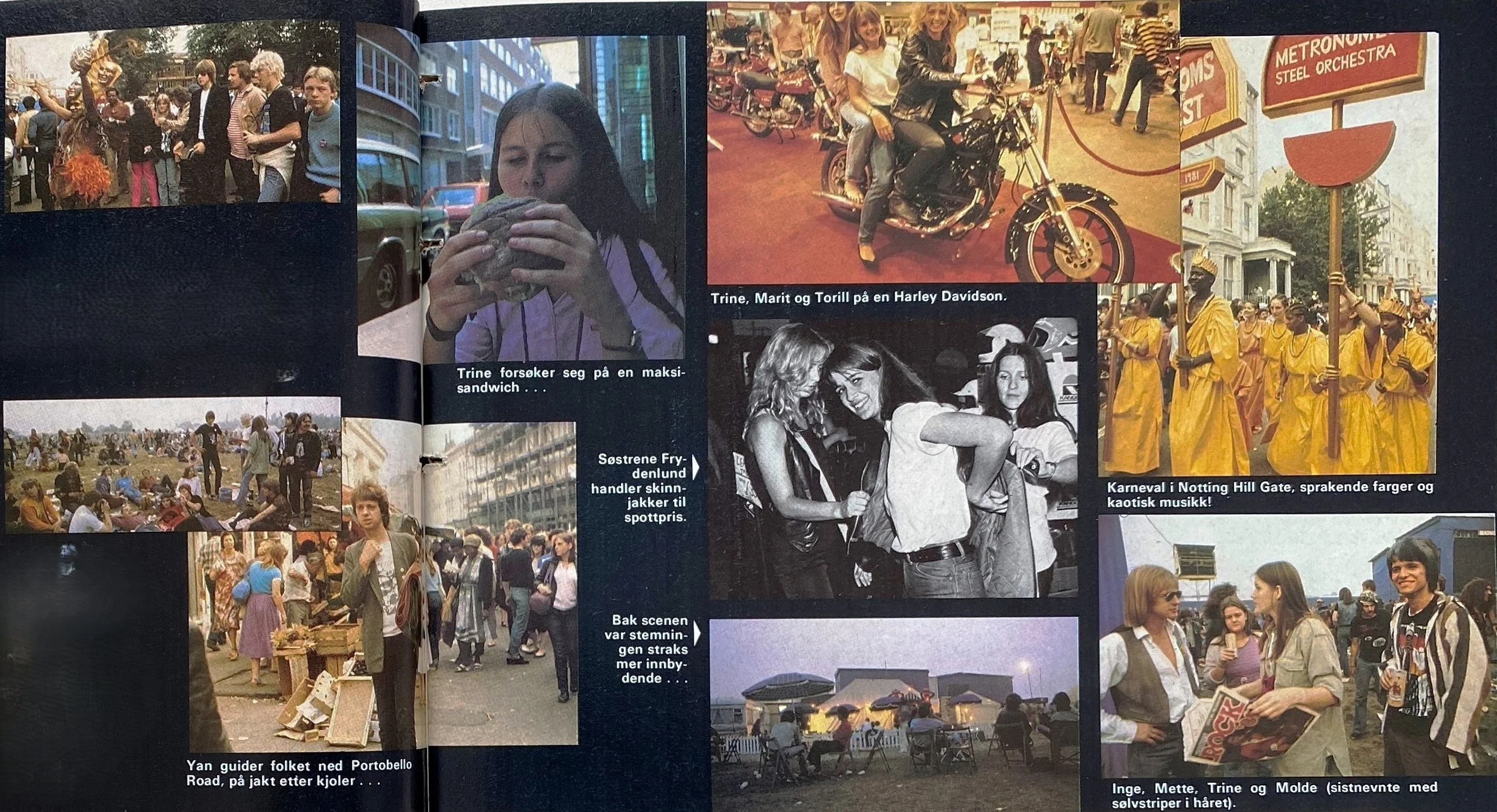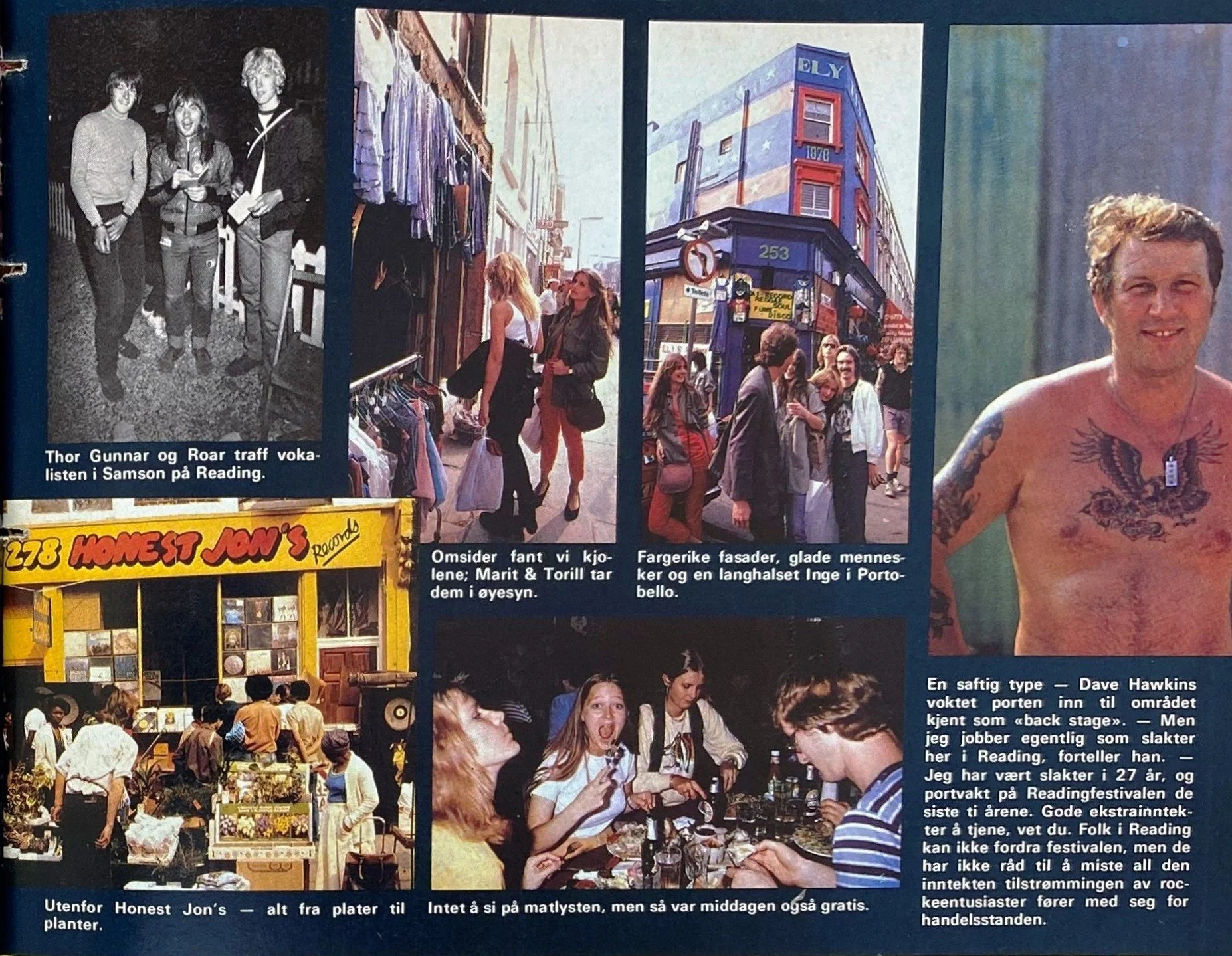 Sammen med Trine Moen og søstrene Marit og Torill Frydenlund fikk Inge og jeg med oss lørdagsmarkedet i legendariske Portobello Road. Jeg fungerte som guide, i desperat jakt på en kjoleforretning. Jeg fant den da også, omsider, etter å ha besøtt Portobellos mange fristelser til øyet ble både sårt og tørt.