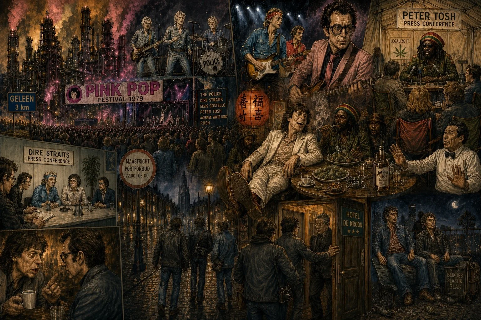 Jeg husker ikke lenger hvorfor Polygram betalte for turen til Geleen, tre mil fra Maastricht, helt syd i Nederland, nærmest en kvise inn i Belgia, for å overvære Pink Pop-festivalen. Men jeg har en mistanke om at det gjaldt Dire Straits.