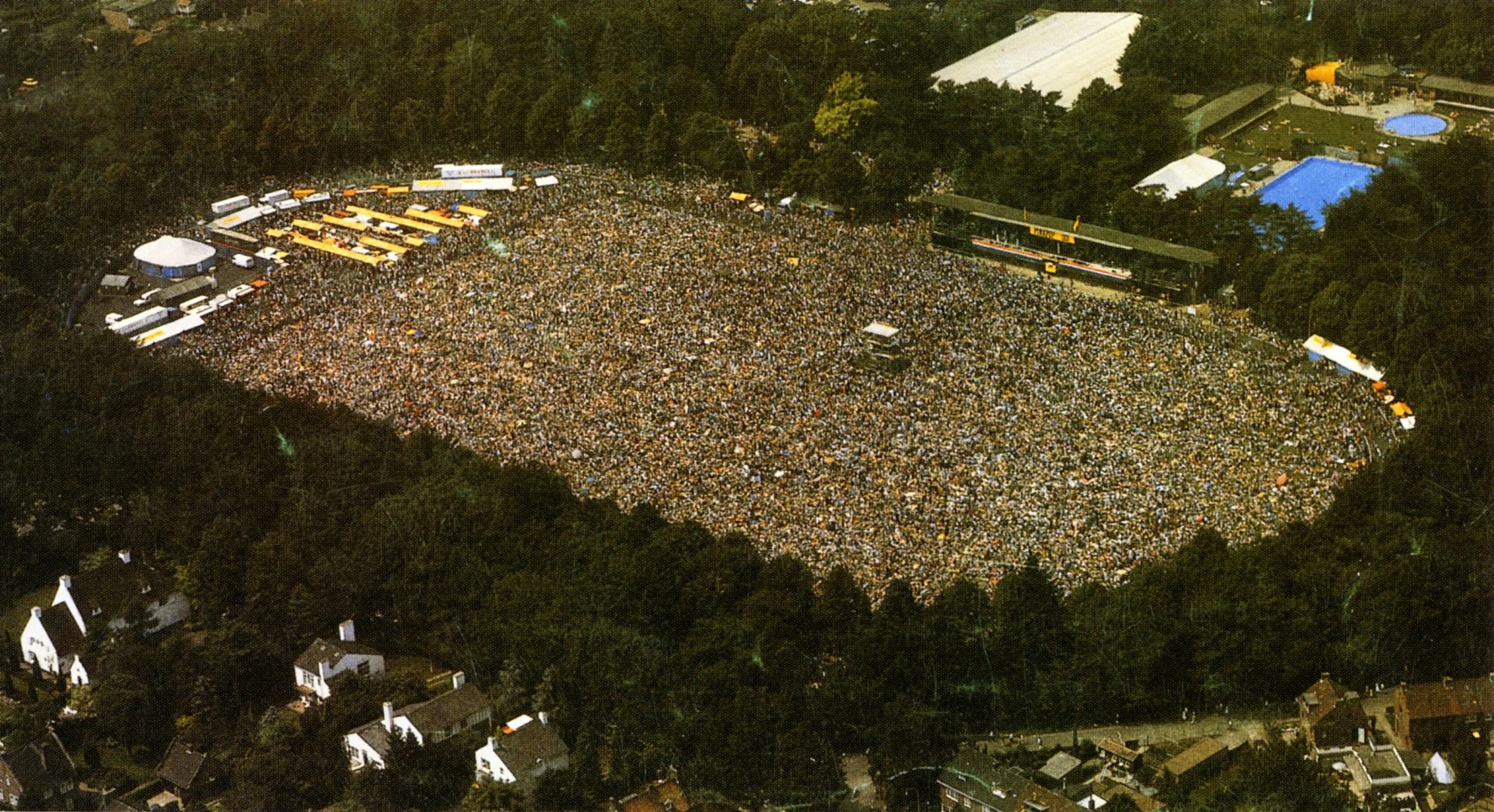 Via en bratt trapp kommer vi ut rett foran scenen, og stirrer en utrolig folkemasse i hvitøyet. Tusener på tusener hopper og danser. Heldigvis er det et tre meter høyt nettinggjerde mellom dem og oss. Alles øyne er rettet oppover mot scenen. Drøyt fire meter over publikum. Average White Band har nettopp gjort seg ferdig med sitt utrolige velpolerte funkshow, og den nye britiske trioen The Police er allerede klar til innsats.