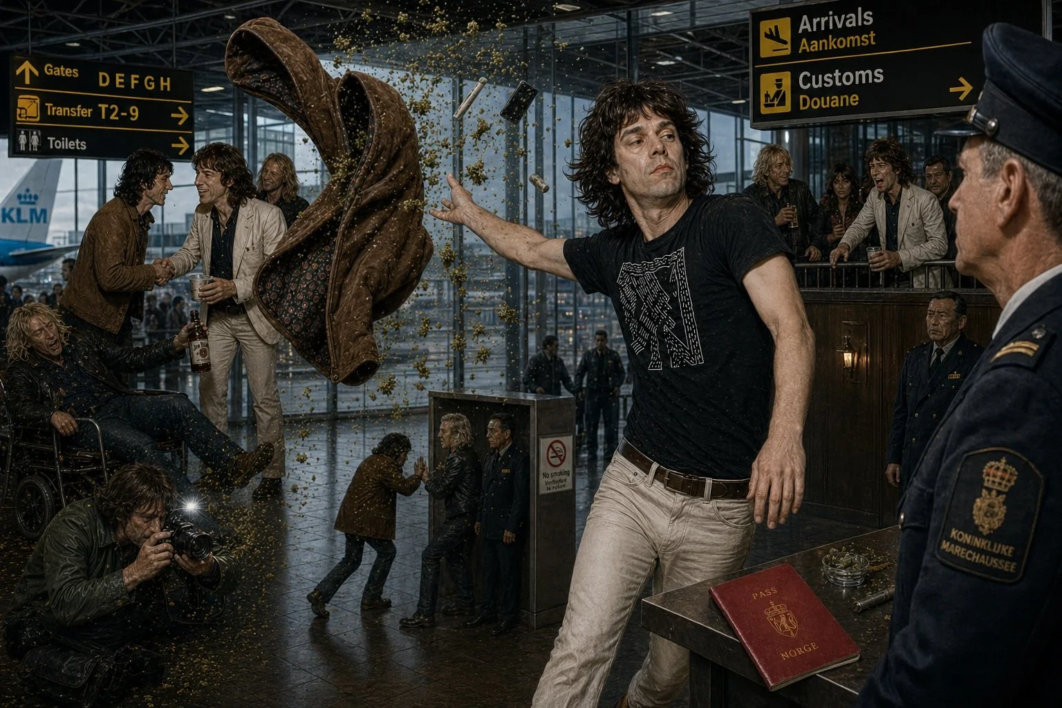 Vi når Amsterdam i tide. Jeg må hive jakken i en søppelbøtte utenfor flyterminalen. Marihuana over alt, til og med i håret. Jeg børster og børster på vei mot billettkontrollen, og stapper det jeg kan i munnen. Det smaker tørket gress og surt lær.