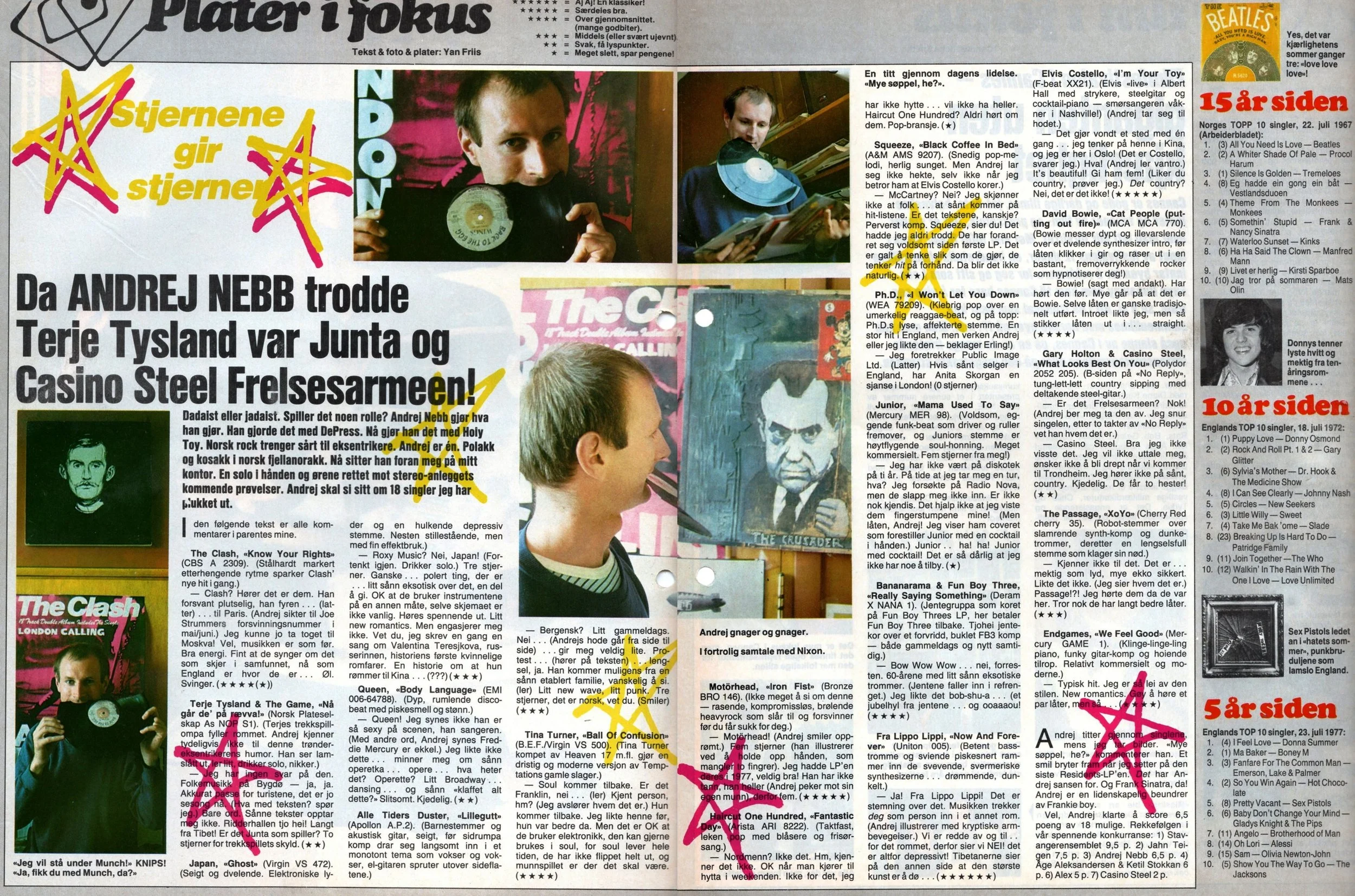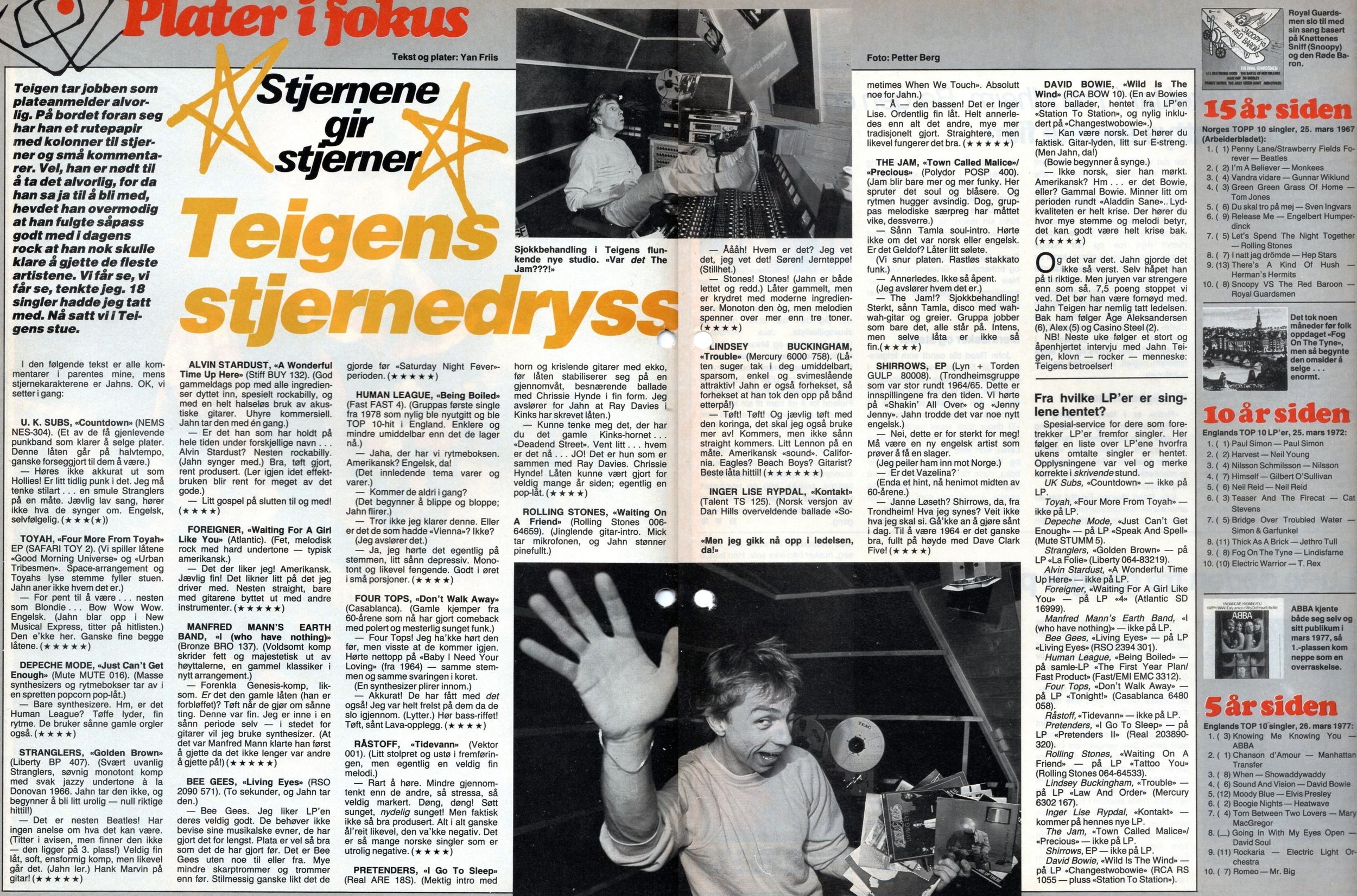 Vi begynner en ny serie. Med jevne mellomrom får en popstjerne anledning til å sitte på «riktig» side av platespilleren. I stedet for å få stjerner, kan de gi stjerner. Eller for å si det rett ut: De kan forsøke seg som plateanmeldere!