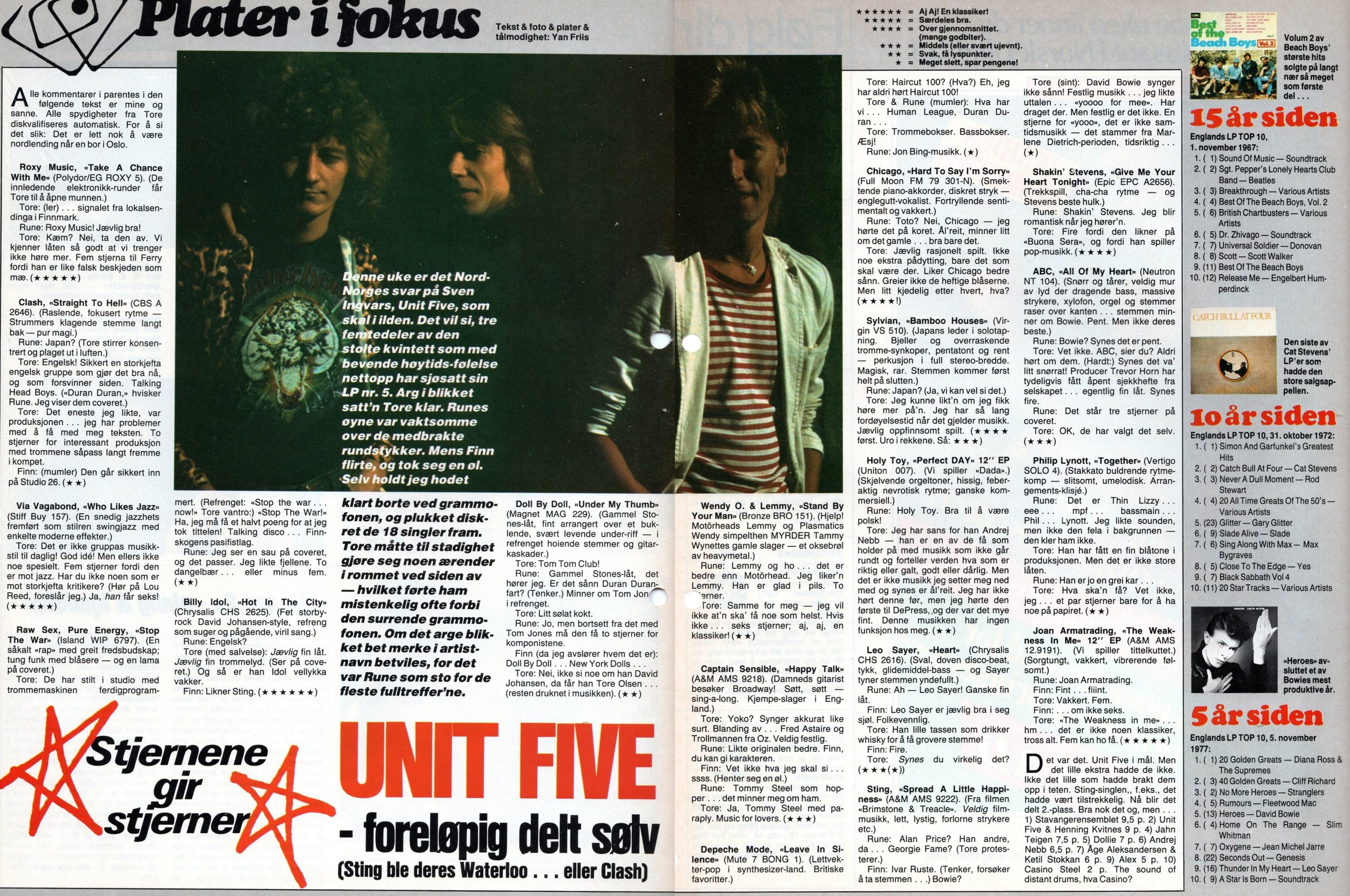 — Likner veldig på Ultravox. Nei! Nei! Det er Human League!! Bare to stjerner! Synth-bølgen er ikke noe for meg. Jeg synes punk-bølgen bød på mer interessante ting.